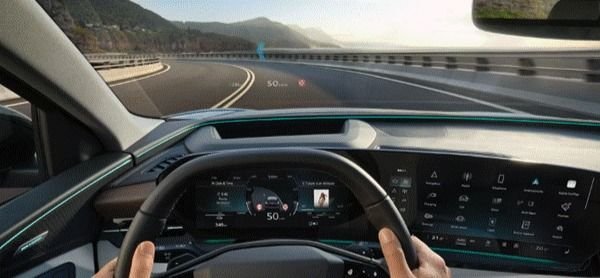 Ele utiliza realidade aumentada para posicionar elementos visuais diretamente na linha de visão do motorista, criando a sensação de que dados digitais estão integrados ao ambiente externo.