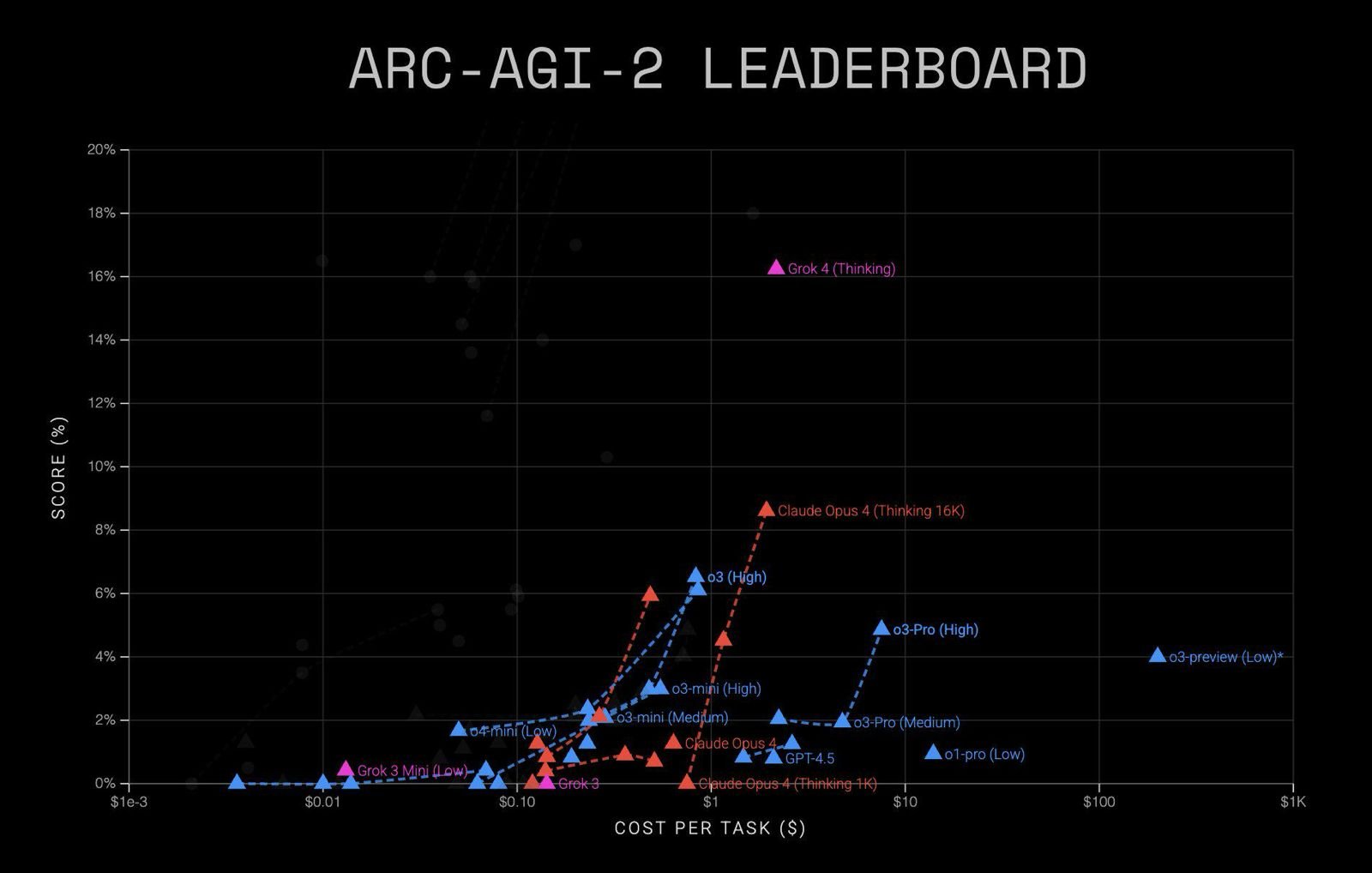 1. Julho (há meros 4 meses): O Grok 4 era o estado da arte. Ele alcançou 15,9% em um benchmark de alta complexidade. Era quase o dobro do segundo colocado. Parecia imbatível.