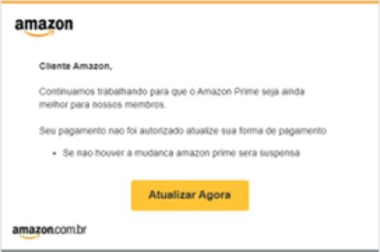 - A pesquisa também destacou o golpe do email de pagamento não autorizado mirando os clientes da Amazon no Brasil, com o envio de mensagens alertando sobre uma suposta falta de pagamento;