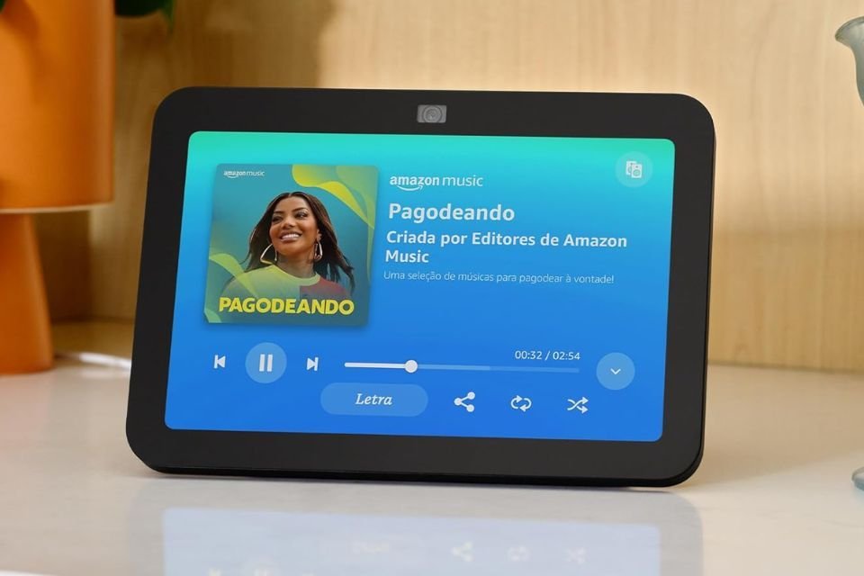 Echo Show 8 (3ª geração): possui ela inteligente de 8” com Alexa, ideal para chamadas de vídeo, assistir filmes e controlar dispositivos da casa conectada por R$1.139,05