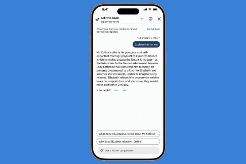Funcionando como um assistente de leitura, o novo recurso de IA do Kindle pode ajudar a esclarecer alguns pontos da trama que tenham deixado o leitor em dúvida. Ele responde perguntas relacionadas a personagens, enredo e outros aspectos importantes.