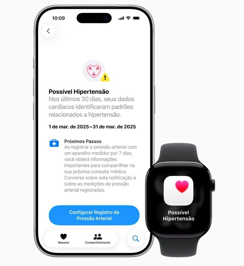 A Apple liberou, a partir desta terça-feira (27), um novo recurso de monitoramento de saúde para o Apple Watch no Brasil. A função do relógio inteligente é uma notificação que avisa sobre um possível quadro de hipertensão no usuário.