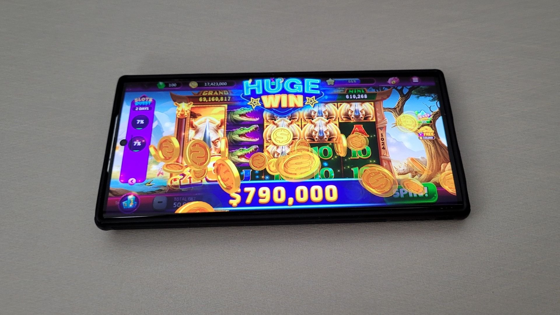 Além do cassino virtual, o jogo também conta com uma aba de loja que permite comprar mais moedas digitais. O jogador também é constantemente apresentado a pop-ups de anúncios para conseguir mais bônus, como rodadas extras.
