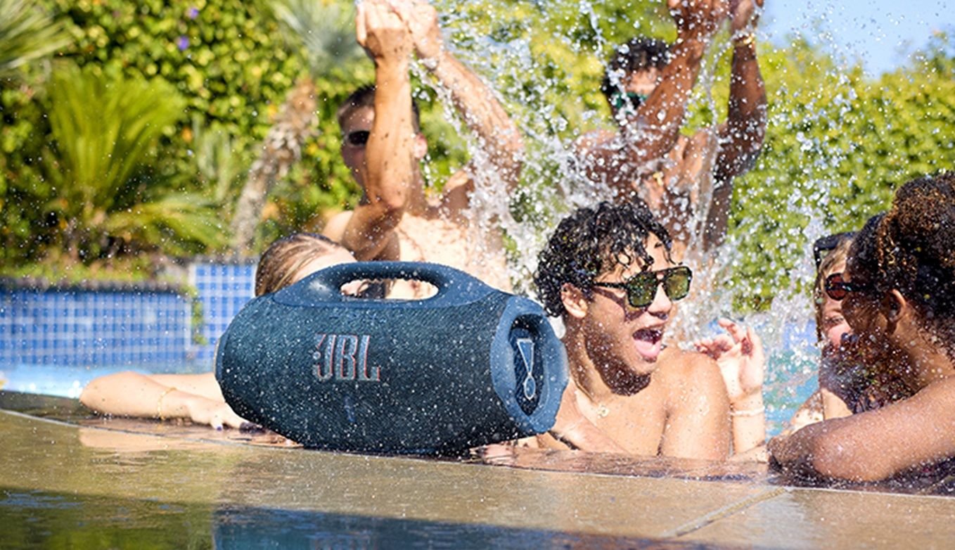 A Boombox 3 da JBL foi lançada em 2022 e tem um design com tampas laterais duplas e alça de metal resistente para transporte. O modelo conta com até 24 horas de duração da bateria, além de resistência IP67 à prova de poeira e à prova d’água e peso de 6,7 kg.