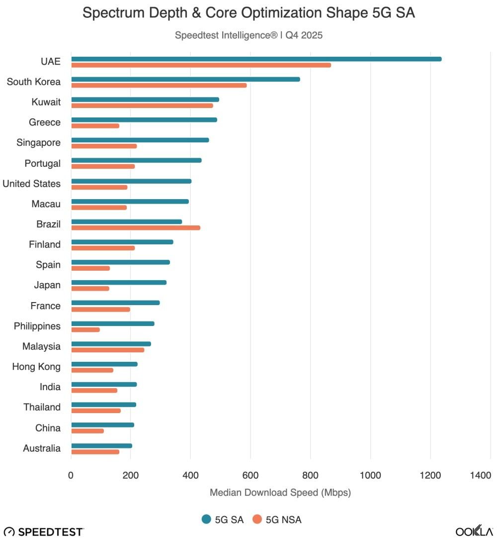 Com estratégias agressivas de implantação de redes 5G avançadas, os países do Conselho de Cooperação do Golfo (CCG) apresentaram as velocidades de download no 5G puro mais rápidas do mundo no final de 2025. A média da região ficou em 1,13 Gbps, quase cinco vezes mais que a europeia.