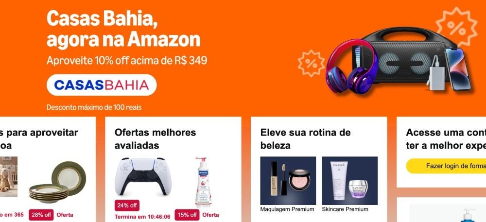 O Grupo Casas Bahia começou a vender produtos no site e no aplicativo da Amazon Brasil, conforme acordo anunciado nesta segunda-feira (23). Celulares e artigos de informática são alguns dos itens que estarão no marketplace da gigante do comércio eletrônico.