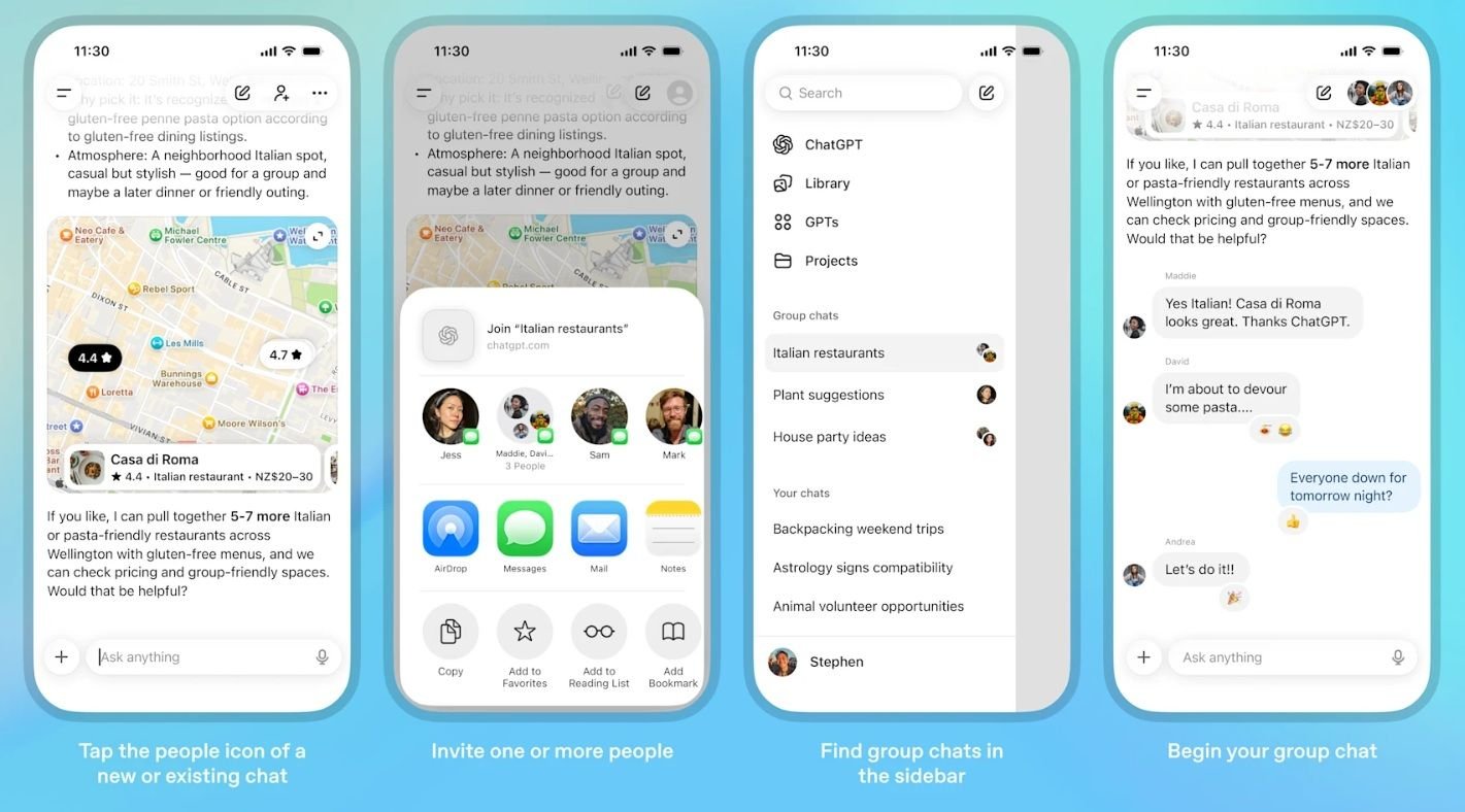 De acordo com a OpenAI, o objetivo dos chats em grupo dentro da IA é juntar “amigos, parentes ou colegas de trabalho em um espaço compartilhado para planejar, tomar decisões ou trabalhar em ideias juntos”.