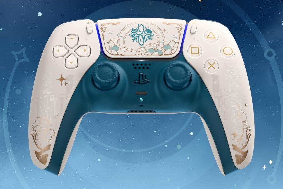 Uma edição especial de controle costuma trazer elementos diferenciados, que rementem a jogos, eventos ou datas comemorativas, como no caso do DualSense temático de Genshin Impact (PlayStation/Divulgação)