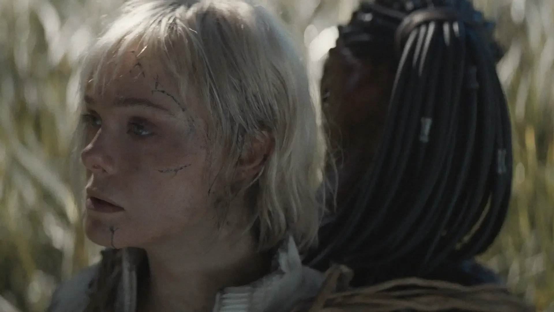 Em Terras Selvagens, acompanhamos Dek, um jovem yautja que busca provar seu valor em uma ilha remota. Lá, ele conhece a androide Thia, interpretada por Elle Fanning, com quem ele forma uma dupla para encarar um mesmo adversário