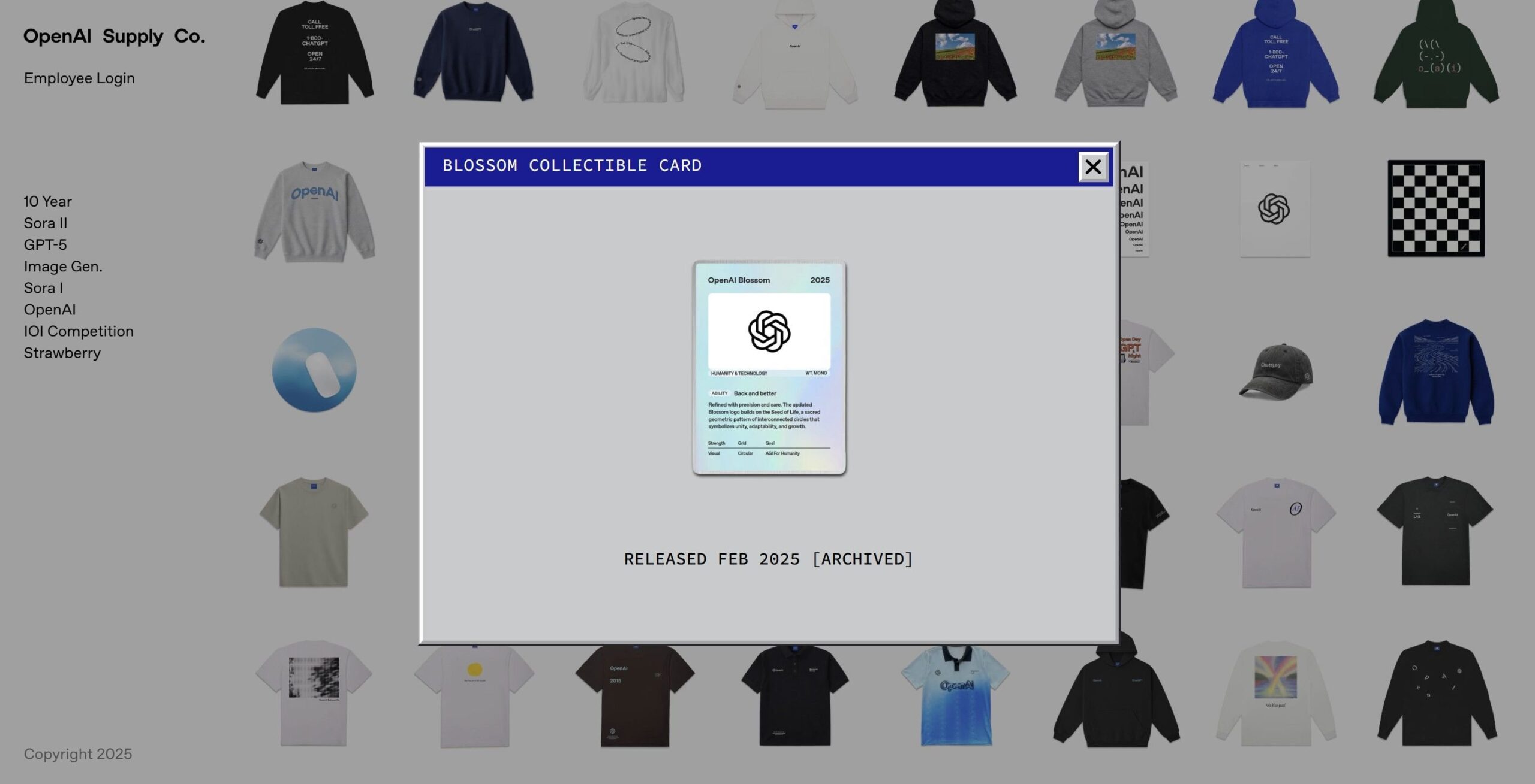 O site parece ter sido criado, inicialmente, apenas para funcionários da própria OpenAI, tanto que conta com uma área de login. Ele funciona sob a marca “OpenAI Supply Co.” e, entre os itens, você pode encontrar coisas como: