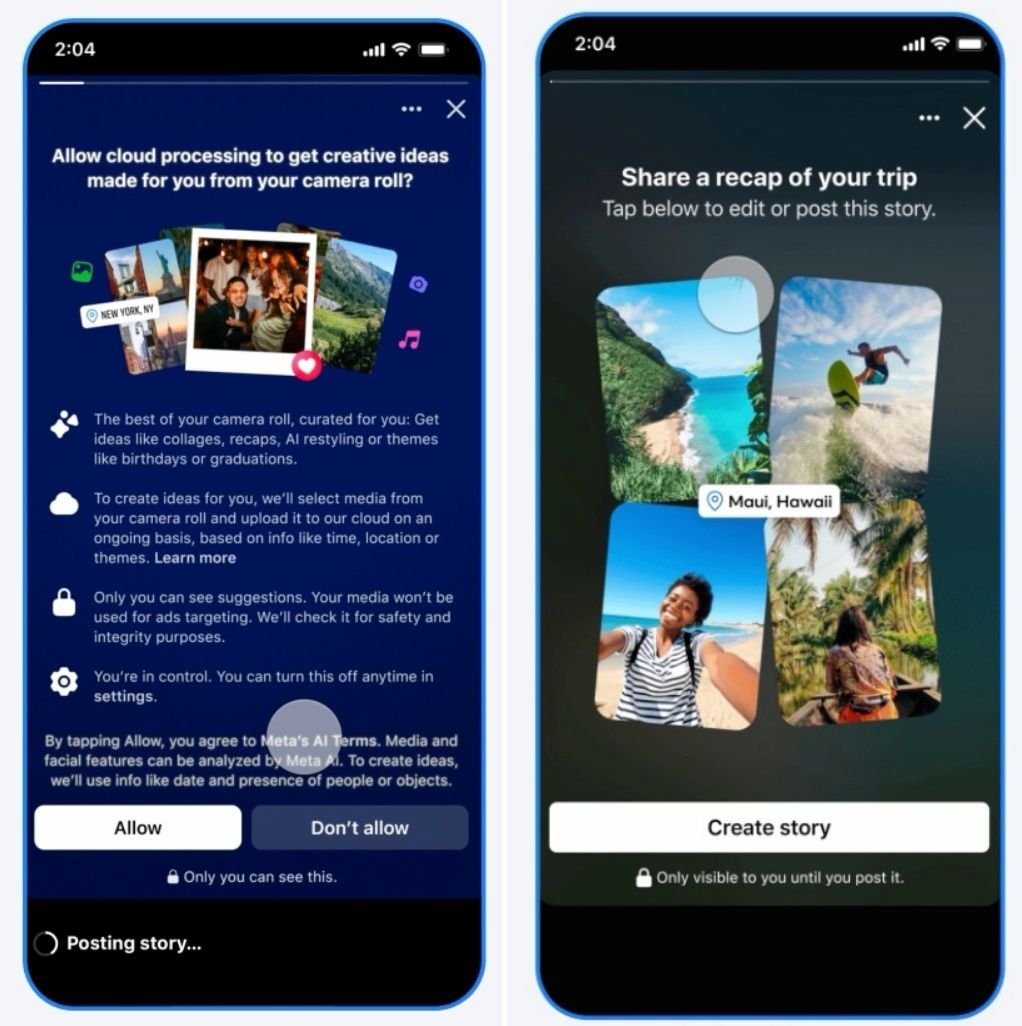 Além disso, a companhia garante que ela não vai utilizar todo o conteúdo da sua câmera para treinar modelos de linguagem da Meta AI, que é a plataforma de IA da companhia. Por outro lado, caso você compartilhe ou edite o material usando ferramentas da Meta AI, isso significa também a autorização para a coleta da imagem.