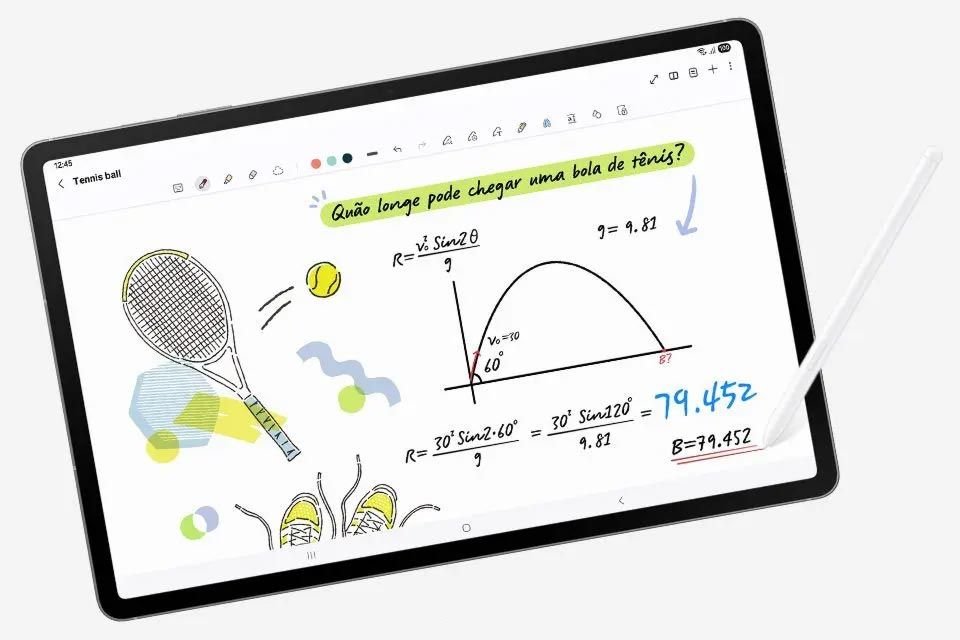 Mesmo sendo leve e fininho, o tablet é equipado com um poderoso processador Exynos 1580 que, combinado aos 8GB de RAM, entrega desempenho tanto para para estudar e trabalhar quando para lazer, seja assistindo conteúdo no streaming ou até jogando. Sem contar o suporte à Galaxy AI, que oferece recursos como os assistentes de matemática e caligrafia, por exemplo, além de buscas simplificadas bastando apenas circular elementos na tela para encontrar resultados rapidamente.