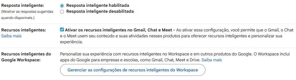 Para evitar que a big tech use seus emails para treinar o Gemini, desative os “Recursos Inteligentes” do Gmail: