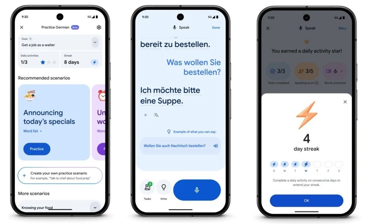 - O Google também ampliou uma ferramenta ainda bastante discreta no serviço de tradução: o aprendizado de idiomas. As novidades incluem mais respostas por parte do aplicativo e metas diárias para manter você sempre fazendo novas lições — quase como um concorrente ainda simplificado do Duolingo;
