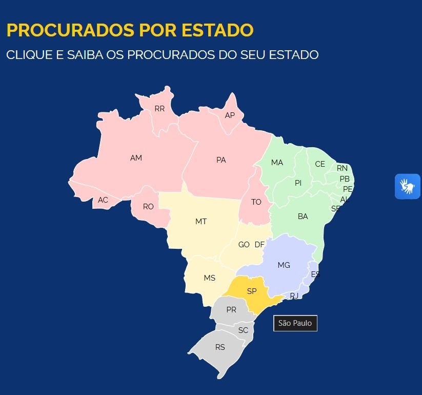 Um dos pontos mais interessantes sobre o site do Projeto Captura é a possibilidade de usar um mapa interativo. Ao rolar a página, há um mapa do Brasil onde o usuário pode clicar no estado de interesse, e será direcionado para outra página que contém todos os procurados por crimes naquela área.
