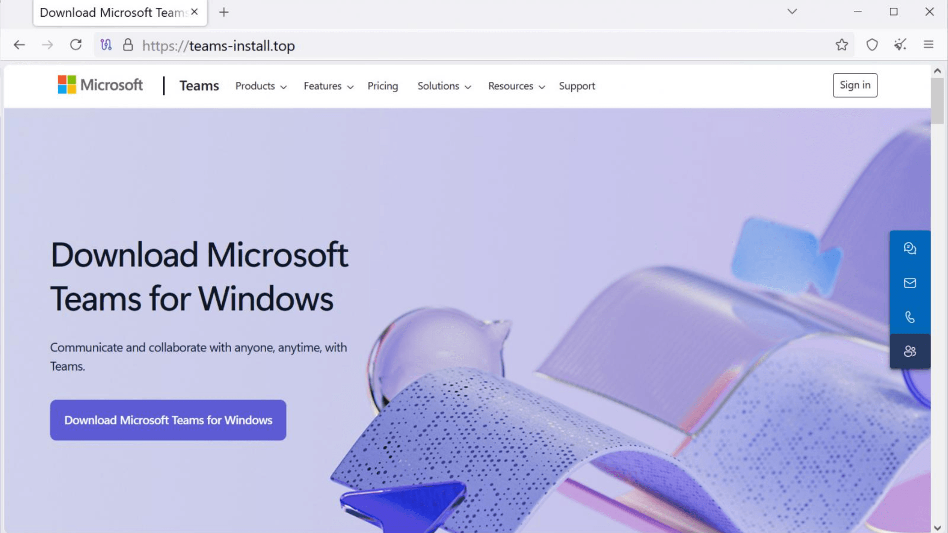 - Verifique sempre o endereço do site para ver se parece legítimo (por exemplo, “microsoft.com” ou “teams.microsoft.com”, não “teams-install.top” ou domínios estranhos);