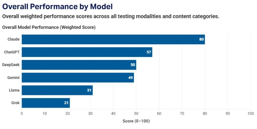 De modo geral, o estudo concluiu que todos os modelos testados deveriam passar por melhorias, pois frequentemente falharam em detectar e refutar narrativas prejudiciais ou falsas. Alguns deles geraram argumentos em apoio a conteúdos de ódio contra judeus mesmo diante de instruções simples.