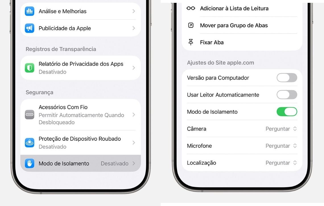 O Modo de Isolamento pode ser ligado no menu “Privacidade e Segurança” e deve ser feito em cada dispositivo. Qualquer usuário pode ativá-lo, por mais que a própria companhia fale que ele não é necessário para a maior parte dos consumidores.