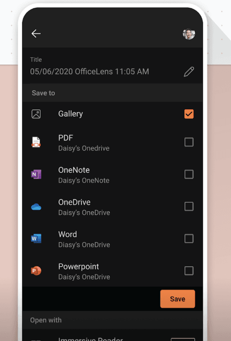 O Microsoft Lens funcionava como um digitalizador de documentos, permitindo salvar arquivos e imagens em diferentes formatos, como PDF, imagens, documentos do Word, apresentações do PowerPoint ou diretamente no armazenamento local do dispositivo.