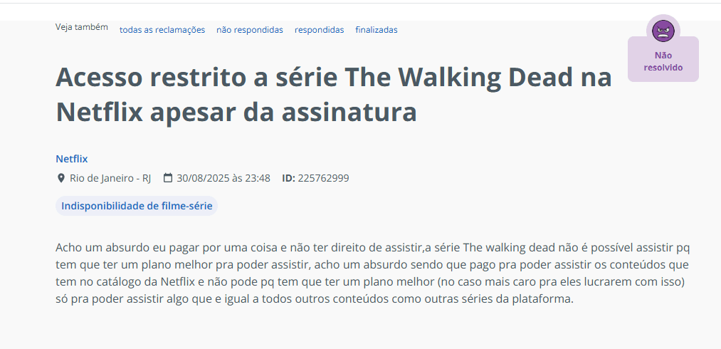 Nos últimos dias, a Netflix virou alvo de revolta entre assinantes brasileiros do plano mais barato, o básico com anúncios. Nas redes sociais e em plataformas como o Reclame Aqui, usuários se queixaram de títulos populares que simplesmente “sumiram” do catálogo, exibindo um cadeado vermelho no lugar do botão de play.