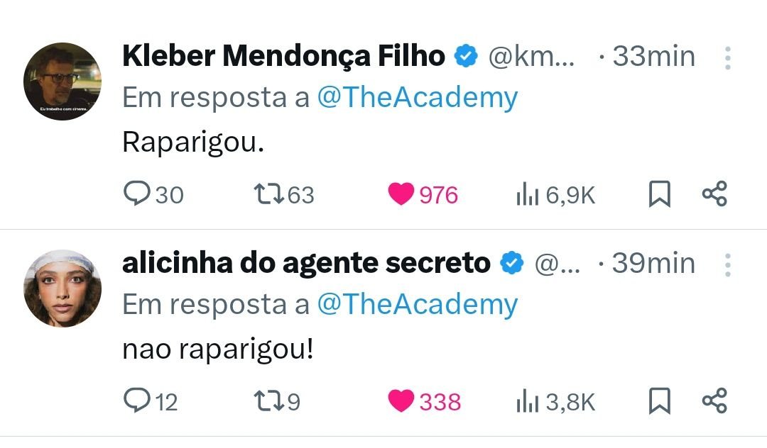 Ser brasileiro é bom demais! Tudo não passa de uma brincadeira, mas essa movimentação nas redes sociais só mostra que, novamente, o público está engajado e quer fazer barulho para que o Brasil concorra ao Oscar 2026. Com “Ainda Estou Aqui”, a repercussão na foto foi ainda maior, chegando a quase 3 milhões de curtidas no Instagram.