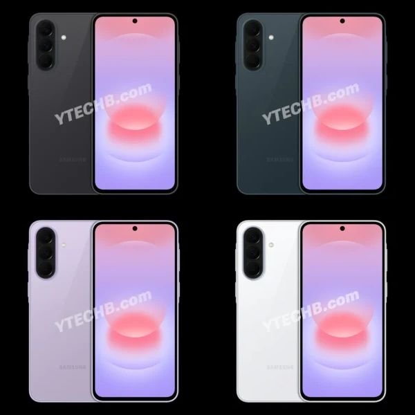 As imagens compartilhadas pelo site YTECHB indicam que o Galaxy A37 será vendido nas cores Charcoal (carvão, cinza escuro), GreyGreen (verde escuro), Lavender (lavanda) e White (branco).