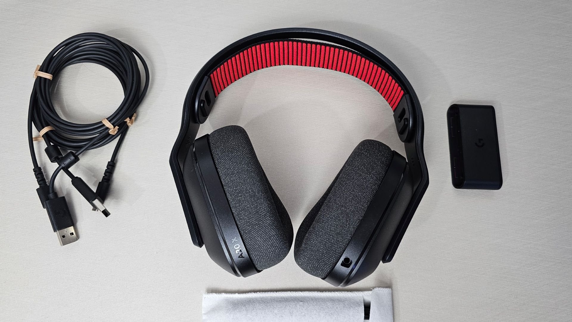 A caixa conta com uma boa construção, seguindo os padrões tradicionais da Logitech para produtos mais premium. Todos os itens vêm compartimentados e protegidos, com um manual ajudando no uso inicial e na configuração do headset com diferentes dispositivos.