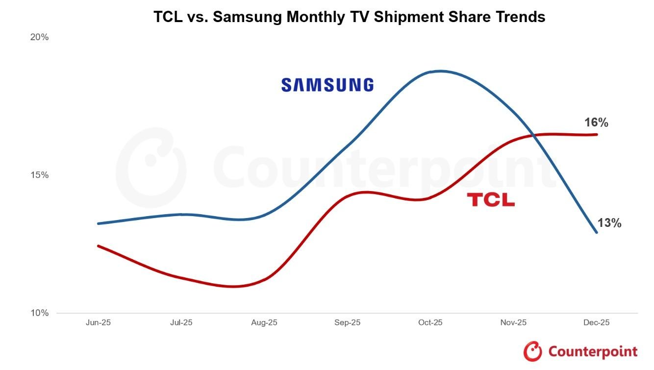 De acordo com um levantamento da Counterpoint, a TCL vendeu mais Smart TVs que a rival sul-coreana Samsung no período. Ela foi responsável por movimentar 16% do mercado no fim do ano, contra 13% da concorrente, 12% da Hisense e 8% da LG.