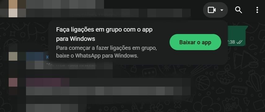 Atualmente, quando você tenta fazer uma ligação com várias pessoas, o aplicativo recomenda que você faça o download da versão para desktop do mensageiro.